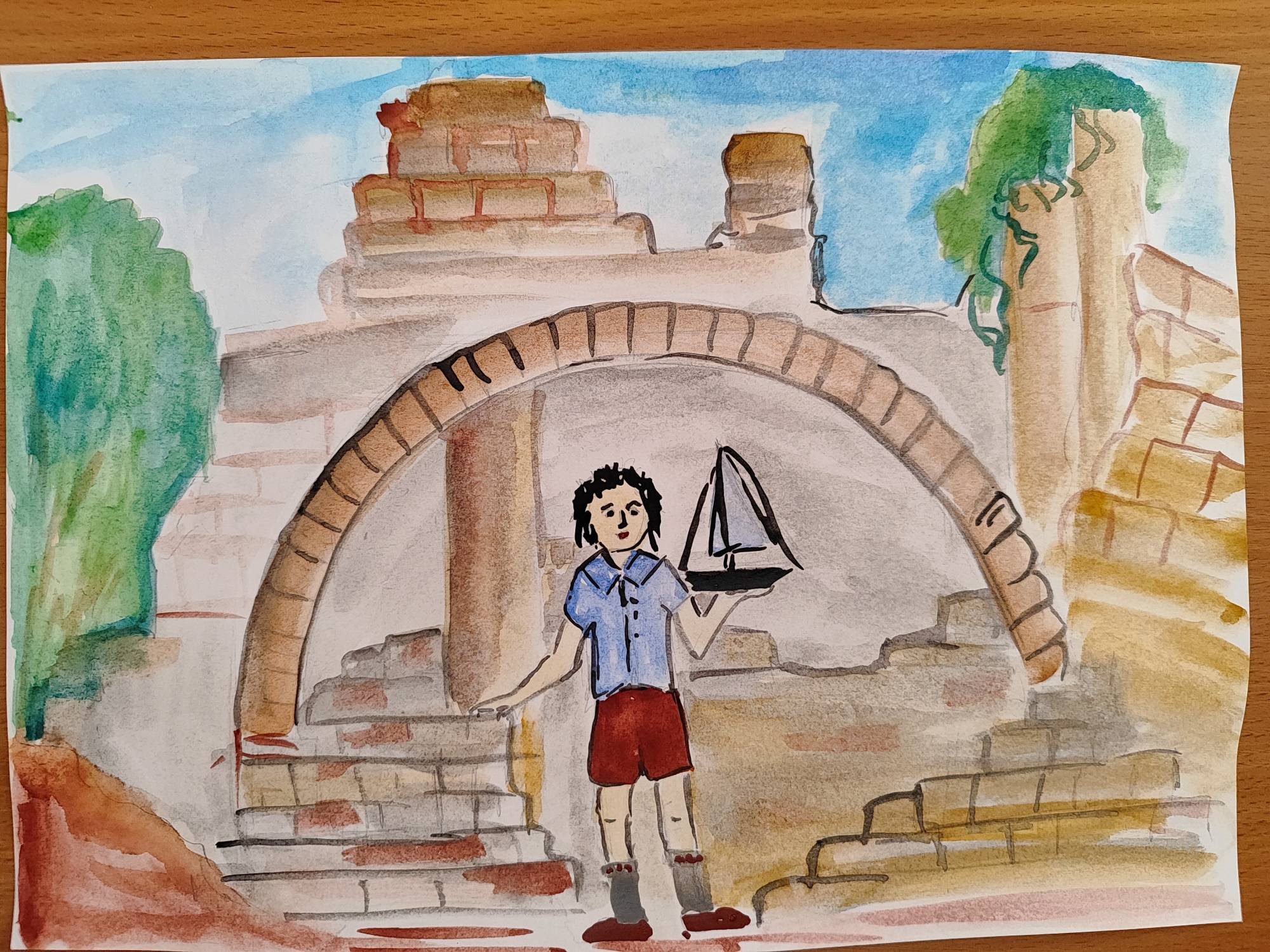 Петька Викулов находится в церковном подвале, проходит к нише, чтобы поставить свой кораблик.