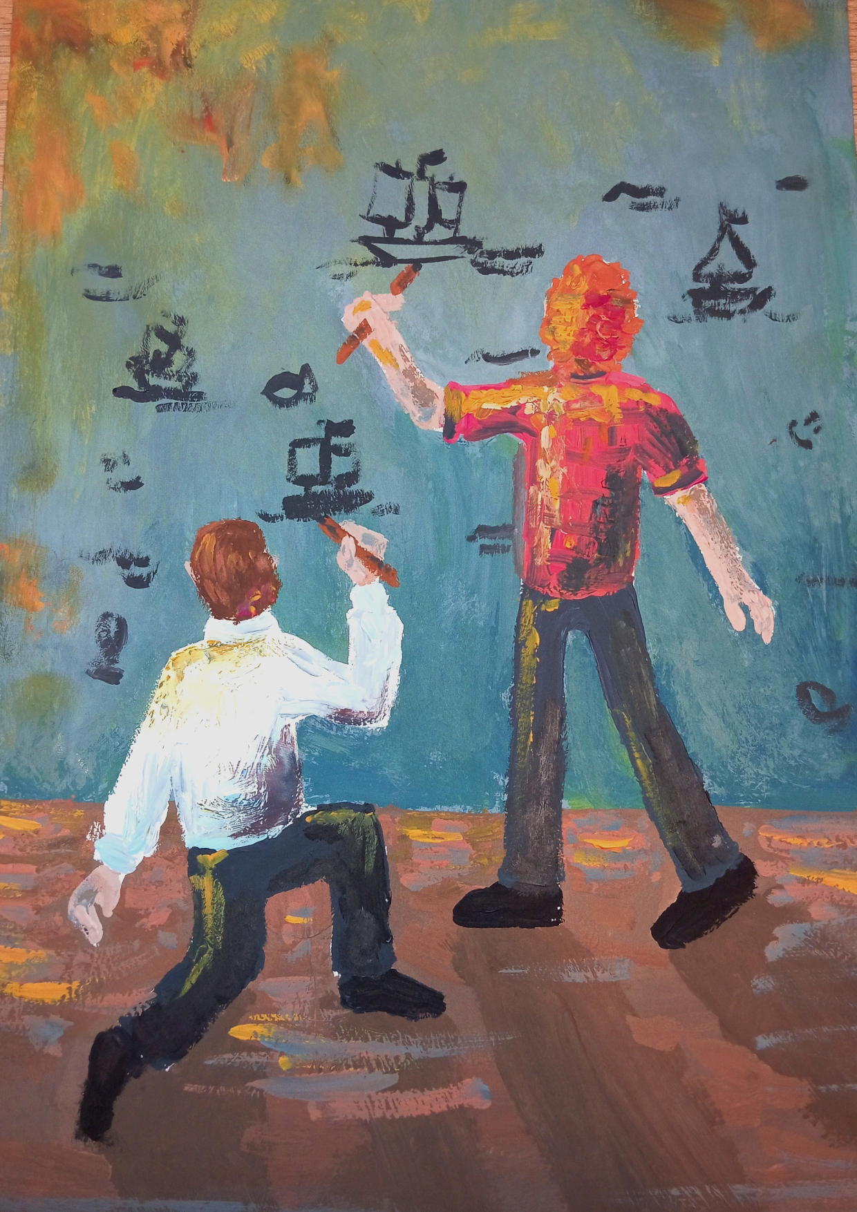 Ребята рисуют корабли на стене в детском клубе "Парус".