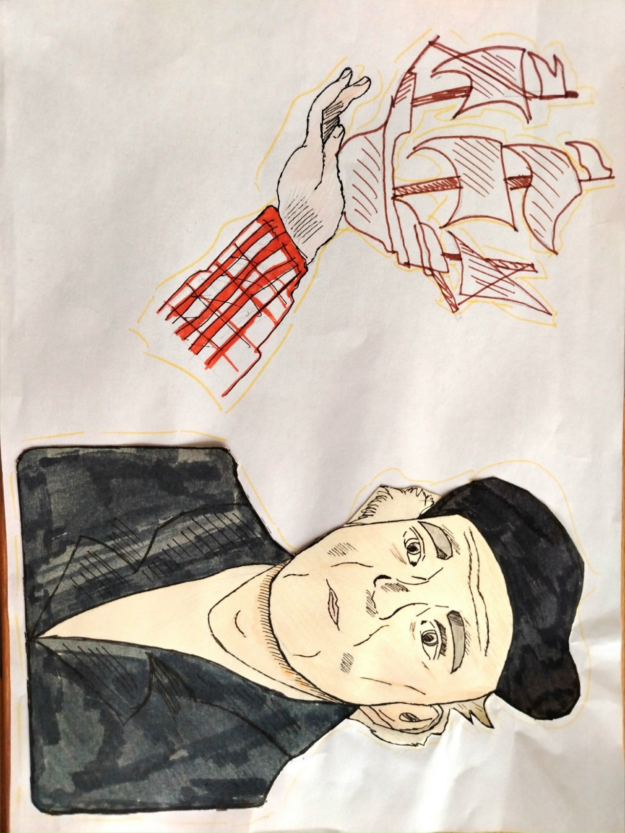 Я изобразила замечательного писателя и корабль в руках ребенка. Этот корабль, я считаю, - главный символ его книг, символ надежды, мечты и счастья как для писателя, так и для читателя и его героев книг!!!