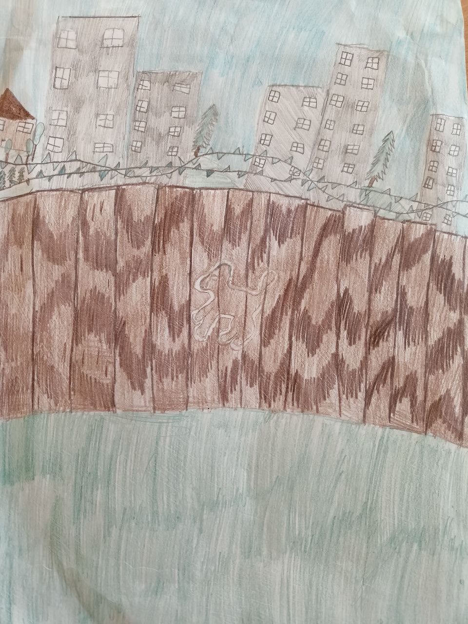 Рисунок выполнен цветными карандашами к повести В. Крапивина "Белый щенок ищет хозяина"