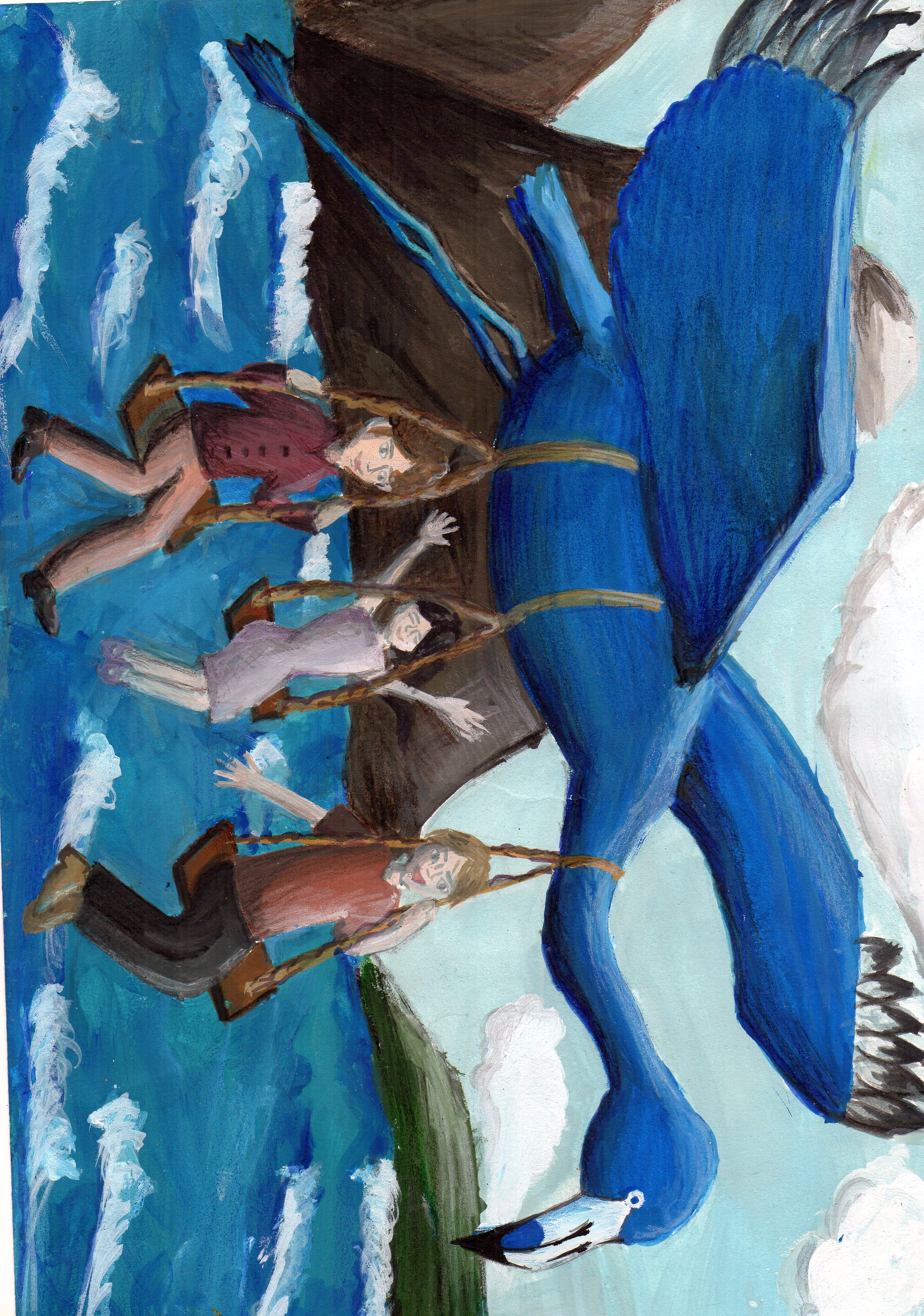 рисунок показывает нам, как синий фламинго спасает детей из беды