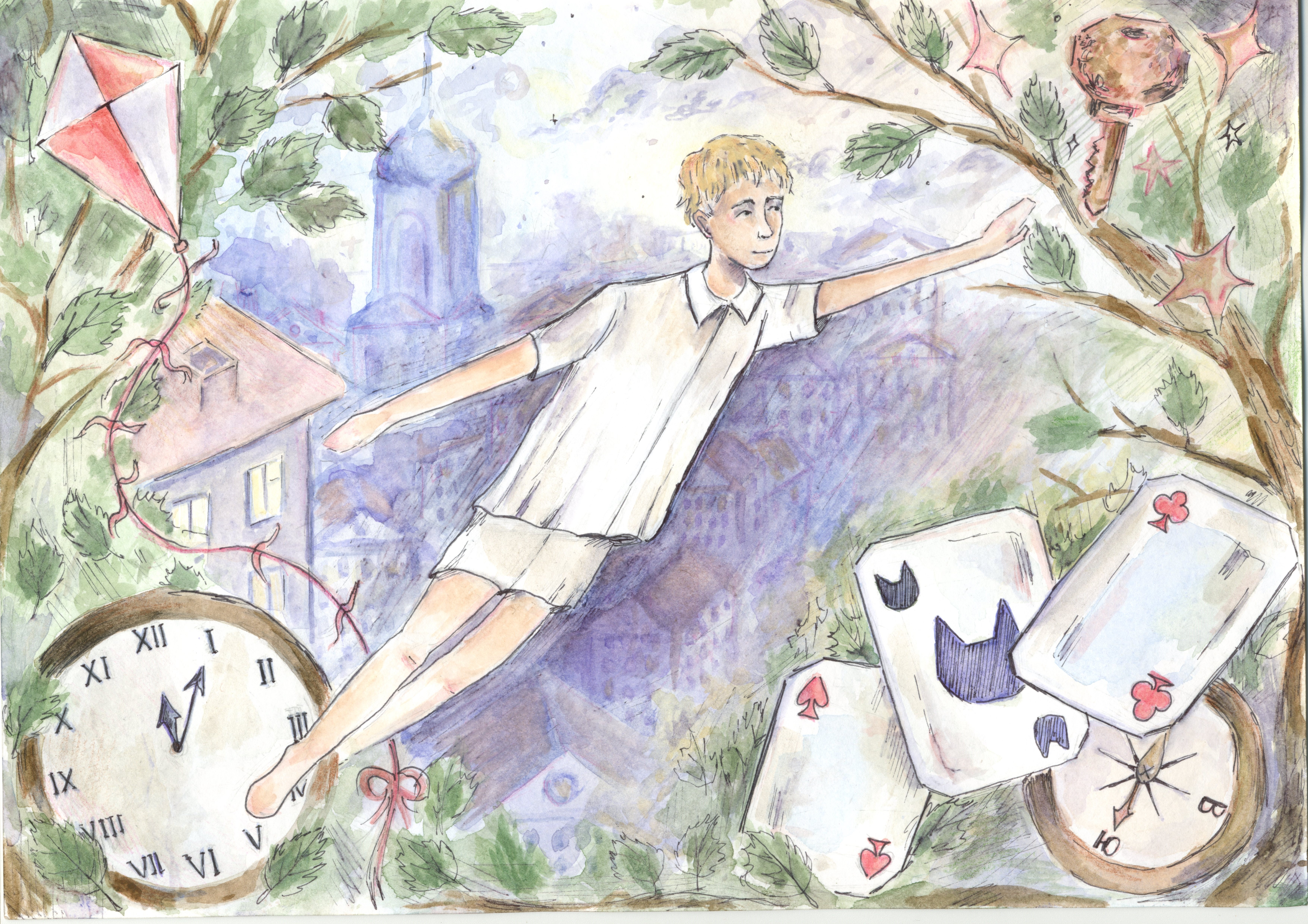 Рисунок к произведению В. П. Крапивина "Тополиная рубашка". Техника - акварель с дополнительной прорисовкой деталей гелевой ручкой.