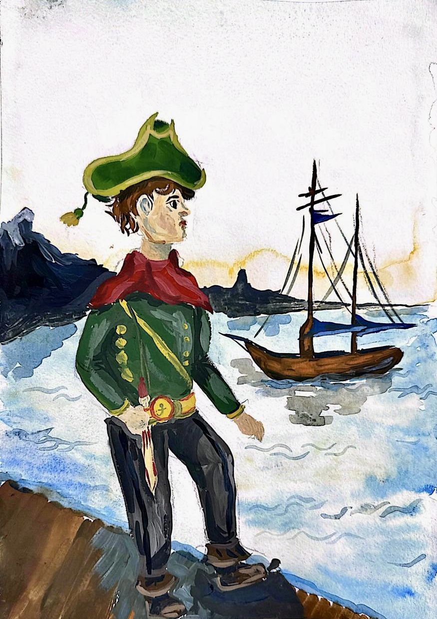Представьте себе морской пейзаж на закате солнца, когда море мерцает золотыми бликами, отражающими лучи уходящего светила. Над спокойной водной гладью возвышается силуэт старинной каравеллы с белоснежными парусами, едва различимый в вечернем свете. Её мачты словно касаются облаков, создавая ощущение невесомости и лёгкости. Но самое удивительное здесь — сама атмосфера загадочности и тайны. Каравелла будто бы появляется из ниоткуда, её очертания слегка расплывчатые, создающие впечатление нереальности происходящего.